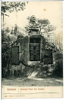- ↑ a b Busta Petra Velikého [online]. Infocentrum města Karlovy Vary [cit. 2020-04-04]. Dostupné online.