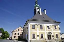 - Radnice – První radní dům postavený v roce 1560 byl zčásti zděný a zčásti dřevěný a součástí byla městská šatlava. V roce 1716 se rozhodnutím Jakuba Hanibala z Hohenemsu začalo s výstavbou nové radnice, na jejíž výstavbu věnoval 330 kmenů dříví a 39 700 ks cihel. Dokončena byla o tři roky později. Budova byla zděná se sedlovou střechou a cibulovitou věží s hodinovým strojem. V radnici byla také tehdy šatlava.