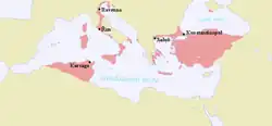 | Římská říše Βασιλεία Ῥωμαίων, Basileía Rhōmaíōn (el) Imperium Romanum (la)