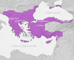 ![]() Byzantinci s křižáky obléhají Nikaiu, středověká iluminace | |||