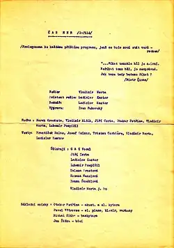 - 1977 Čas her – Defilé : Prolegomena ke každému příštímu verš-rocku, který se bude moci stát programem, Divadlo Ateliér, režie: Vladimír Merta