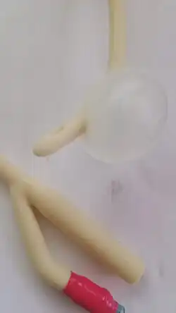Je dobré po provedení procedury močové katetrizace po vypuštění fixačního balónku vyrovnat tlak ve prázdné stříkačce se vzduchem (fix balónku) aby pokrčený fixační balonek podtlakem při vytahovaní moč. katetru pac při vytahovaní cévky nezpůsoboval zbytečnou bolest.