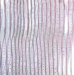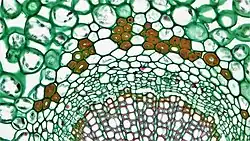 - schopnost produkce druhotně zesílené sekundární buněčné stěny impregnované ligninem