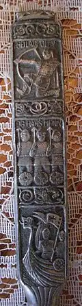 - ↑ SINGEROVÁ, Zuzana. Materiálový průzkum a konzervace kovových destiček z krypty sv. Mikuláše v Chebu, bakalářská práce [online]. Brno: Masarykova univerzita, Přírodovědecká fakulta, Ústav chemie, 2015 [cit. 2023-04-14]. [encyklopedie.cheb.cz/administrace/soubory_varia/1526554543_cz_54__materialovy_pruzkum_a_konzervace_kovovych_desticek_z_krypty_sv__mikulase_v_chebu.pdf Dostupné online].