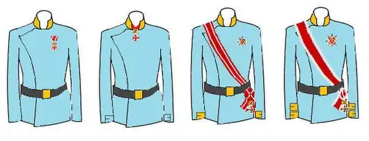 I. třída (odznak na barevně odlišené velkostuze, menší hvězda)- komandér (odznak na krční stuze)