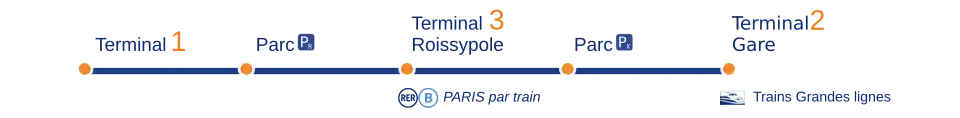 - Terminal 2 Gare (přestup na RER B a na vlaky TGV)