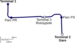 - Terminal 3 Roissypole (přestup na linku RER B)