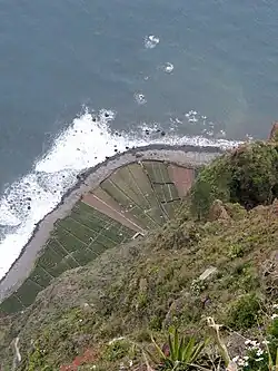 Na patě útesu jsou na mořském břehu políčka, malá vinice a restaurace. Přístup k políčkům byl do roku 2003 jen lodí. V srpnu toho roku byl postaven původně nákladní výtah téměř pod vrchol útesu do místa zvaného Rancho. Dolní stanice je u políček s názvem Fajãs do Cabo Girão. Dnes lanovka vozí i turisty, při jízdě je třeba překonat strach z výšek.V provozu jsou dvě kabiny po 6 místech,