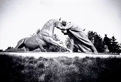 Fotografie Pomníku jezdecké srážky u Střezetic 1866. Nasnímáno camerou obscurou na fotografický papír.