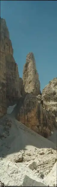 Obrázky, zvuky či videa k tématu Campanile Basso na Wikimedia Commons - Via Ampferer na Campanile Basso