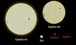 - ↑ a b c d e f g h i TORRES, Guillermo; CLARET, Antonio; YOUNG, Patrick A. BINARY ORBIT, PHYSICAL PROPERTIES, AND EVOLUTIONARY STATE OF CAPELLA (α AURIGAE). The Astrophysical Journal. Roč. 2009, čís. 700 (2). Dostupné online [cit. 2015-12-13]. ISSN 0004-637X. doi:10.1086/116995. (anglicky)
