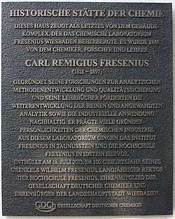 - V roce 2013 Společnost německých chemiků označila chemickou laboratoř Fresenius Wiesbaden za historické místo chemie, aby tak uctila počátky analytické chemie v Německu.
