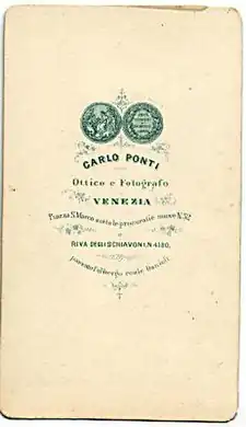 Carlo Ponti (1823, Sagno, kanton Ticino, Švýcarsko - 16. listopadu 1893, Benátky) byl italský fotograf a optik narozený ve Švýcarsku. Je známý svými výtvarnými obrazy Benátek, pohledů na město a na každodenní život v něm.[1][2] Profesně aktivní byl v období 1858-1875 nejen v Benátkách, ale také ve Veroně a Padově. Byl jedním z portrétních fotografů a fotografů architektury 19. století. Pracoval jako optik italského krále Viktora Emanuela II. a vynalezl megalethoskop - zařízení na prohlížení fotografií.[1][3]