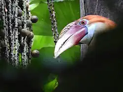 Zoborožec ostrovní (Rhyticeros narcondami) hodující na plodech palichy jemné