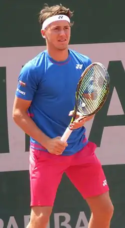 ![]() Casper Ruud na French Open 2022, kde si zahrál první grandslamové finále | |