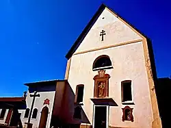 Na venkovní zeď kostela navazuje křížová chodba, v níž se nacházejí troje sluneční hodiny, nejstarší z roku 1692, a zahrada s meteorologickou observatoří, založenou roku 1882 z rozhodnutí města Cavalese.