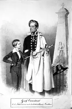 - Karel hrabě z Cavriani (8. července 1803 v Seibersdorfu – 23. července 1870 tamtéž), vnuk Leopolda Karla, od 27. ledna 1849 generálmajorem, 13. ledna 1852 povýšen na polního maršála-poručíka 11. dragounského pluku. 22. listopadu 1855 odešel na odpočinek.[3] 24. května 1837 se ve Vídni oženil s Terézií Rózou princeznou Esterházyovou z Galanty (12. července 1815 ve Vídni - 28. února 1894 tamtéž), dámou Řádu hvězdového kříže, a v témže roce se stal majitelem dědičných panství Unterwaltersdorf a Schöngrabern po svém otci, Maxmiliánovi hraběti z Cavriani (1773–1837). Se svou manželkou měl sedm dětí. Po zrušením panství v roce 1848 přišel rod Cavriani také o majetky Unterwaltersdorf a Schöngrabern.[4]