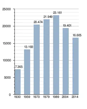 Podle sčítání lidu v roce 2014 žilo ve městě 16 605 obyvatel, což je méně než při předchozím sčítání lidu v roce 2004, kdy zde žilo 19 401 obyvatel. Z tohoto počtu bylo 7 826 mužů a 8 779 žen.[3]