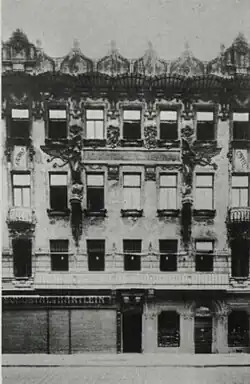 - fasáda budovy České průmyslové banky s kavárnou Café Corso dle návrhu Viktora Olivy, Praha 1, čp. 988, Na Příkopě, označována za první secesní stavbu v Praze, spíše se však jednalo o klasicistní dům se secesními prvky na průčelí a v interiéru[8] (zbořeno roku 1936)