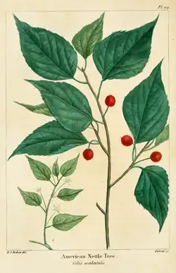 Botanická ilustrace břestovce západního z roku 1819
