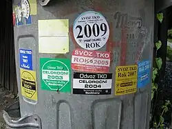 - nálepky, žetony nebo jiné ceniny potvrzující zaplacení poplatku za svoz odpadu