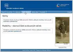 Obrázky, zvuky či videa k tématu Centrální evidence sbírek na Wikimedia Commons - Centrální evidence sbírek, odkaz z Min. kultury