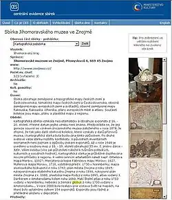 - ↑ a b Co je centrální evidence sbírek Archivováno 6. 7. 2007 na Wayback Machine., text na oficiálních stránkách CES.
