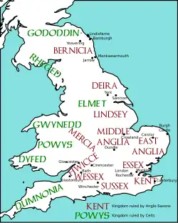 - ↑ a b Barbara Yorke: Kings and Kingdoms of early Anglo-Saxon England. Routledge, London-New York 2002, ISBN 978-0-415-16639-3, s. 133.