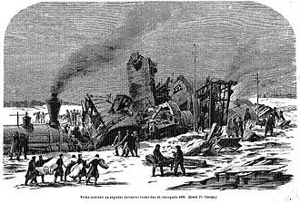 Velkou událostí v 19. století bylo vlakové neštěstí, které se stalo 10. listopadu 1868. Osobním vlakem ve čtyři hodiny ráno jeli vojáci uherského pluku z Plzně do Prahy. Ten den však panovalo velmi špatné počasí a nedaleko Újezda musel vlak zastavit z důvodu sněhových závějí, které nezvládl překonat. Vědělo se, že za osobním vlakem pojede i vlak nákladní. Nelze jednoznačně říct, zda byla všechna opatření proti srážce vlaků využita a strojvůdce dostal zprávu o osobním vlaku stojícím u Cerhovic, ovšem okolo šesté hodiny ranní tento nákladní vlak do osobního v plné rychlosti narazil. Výsledkem srážky bylo cca 35 mrtvých a 60 zraněných. Mrtví byli pohřbeni na starém hřbitově, tj. v místě, kde je dnes dětské hřiště u školy. Na místě jejich pohřbení stojí dodnes památník.