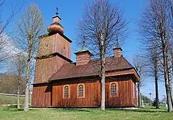 Jedná se o dřevěnou, stavbu sestávající ze tří částí, jimi jsou presbytář, loď a babinec; všechny mají čtvercový půdorys. Věž na západní straně je konstrukce z dřevěných pilířů a trámů, rozdělená stropy na tři podlaží, zakončená cibulovou bání a jehlanovou vížkou. Nad lodí a kněžištěm jednoplášťová šindelová střecha se dvěma věžičkami.