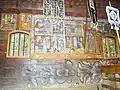 Interiér zdobí malované obrazy na stěnách a také ikony malované na skle a dřevě. Mezi nejstarší patří ikona z 15. století, která představuje Jana Křtitele. Malba se skládá ze scén, které jsou oddělené barevnými pruhy. Figurky jsou kresleny tak, aby byly viditelné téměř jako v náhledech rukopisů, jimiž byl malíř inspirován. Převládá ve světlých, jasných, čistých a harmonizovaných barvách. Výmalba proběhla ve dvou etapách a byla provedena dvěma autory.[5] Interiér babince a lodi zdobí malby Alexandra Ponehalschého z roku 1762.[3] Na západní a jižní stěně babince jsou výjevy ze života Ježíše Krista. V lodi se dochovaly výjevy ze Starého zákona jako např. prorok Eliáš, výjevy z Ráje. Ponehalschi je rovněž autorem ikonostasu a dalších ikon.