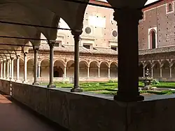 Elegantní portál se sochařskou výzdobou od bratrů Mantegazza a Giovanni Antonio Amadea vede z kostela do Chiostro Piccolo. V jeho středu je malá zahrada. Některé arkády jsou zdobeny freskami Daniela Crespiho. Zajímavé je také lavabo z konce 14. století.
