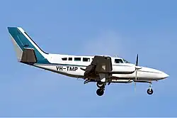 ![]() Cessna 404 Titan II, model z roku 1977, ve zbarvení britské His Majesty's Coastguard | |