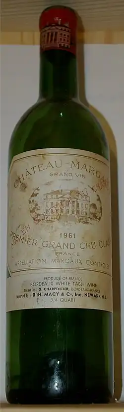 Château Margaux je jednou ze čtyř usedlostí, jimž byla při legendární Bordeauxské klasifikaci vín v roce 1855 přiznána kategorie premier cru. Díky dávnému královskému privilegiu je jedinou usedlostí v celé oblasti, jež nese přesně stejné jméno jako víno vyráběné na jejích pozemcích. Zmíněné víno patří k nejdražším vínům na světě. Láhev stojí víc než 1750 dolarů, a to v době, kdy víno teprve zraje v sudu.[1]