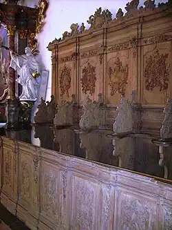 Chórová lavice v klášterním kostele v Tückelhausenu.