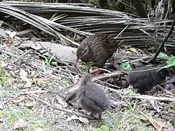- ↑ a b CARPENTER, Joanna K.; O'DONNELL, Colin F. J.; MOLTCHANOVA, Elena. Long seed dispersal distances by an inquisitive flightless rail ( Gallirallus australis ) are reduced by interaction with humans. Royal Society Open Science. 2019-08, roč. 6, čís. 8, s. 190397. Dostupné online [cit. 2023-05-31]. ISSN 2054-5703. doi:10.1098/rsos.190397. PMID 31598239. (anglicky)