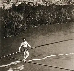 Obrázky, zvuky či videa k tématu Chůze po laně na Wikimedia Commons - Čeští provazochodci: Rudolf Omankovský a Anna Třísková (syn Rudolf Otto Omankovský)