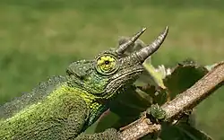 ![]() Samec chameleona třírohého poddruhu T. jacksonii xantholophus | |