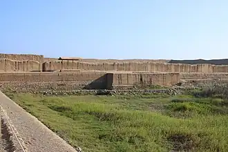 Město se rozkládá na 20 km², přičemž jeho střed pokrývá 6 km². Je rozděleno na devět okrsků, obehnaných zdmi s devíti velkými citadelami. V každém komplexu byly obytné čtvrti, zahrady, nádrže a cesty. Zdi citadel dosahují výšky až 10 m a jsou postaveny z nepálených cihel. Tyto zdi byly bohatě zdobené, sloužily k obraně a jako větrolamy a izolace. V létě udržovaly chlad a v zimě teplo. Na střechách staveb jsou pravidelné otvory, jimiž prochází vítr a fungují tak jako klimatizace. Zdobení na zdech je tvořeno obrazy jejich bohů, mezi nimiž najdeme i ryby, pelikány a jiné mořské ptáky. Nechybí zde ani geometrické vzory.