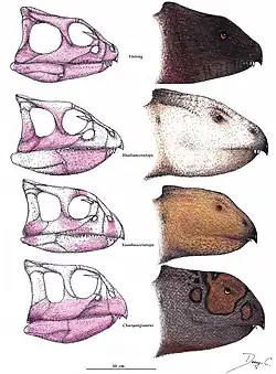 - ↑ Han, Feng-Lu; Forster, Catherine A.; Clark, James M.; Xu, Xing (2016). "Cranial anatomy of Yinlong downsi (Ornithischia: Ceratopsia) from the Upper Jurassic Shishugou Formation of Xinjiang, China". Journal of Vertebrate Paleontology. 36: e1029579. doi: 10.1080/02724634.2015.1029579