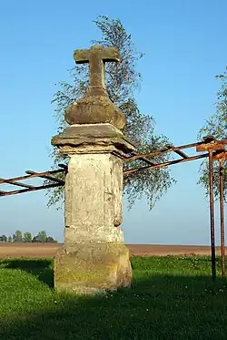 První je za kostelem, pozdně gotické, kamenný čtyřboký, vyrytý letopočet 1780. Další je na návsi poblíž silnice na Radešín. Je pozdně barokní z 18. století. Tvoří ho kamenný válcový sloupek na čtyřbokém podstavci, na vrcholu je křížek s Kristem. Třetí je při silnici k Martiněvsi a je rovněž barokní z 18. století. Křížek s Kristem je na cibulovitém soklu a vysokém hranolovitém podstavci.[5]