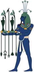 - ↑ BUDGE, Wallis. The Gods of the Egyptians or Studies in Egiptian Mythology [online]. Chicago: London :Mathuen & Co., 1904 Vol.II.. Dostupné online. (anglicky)
