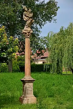 U silnice do Soběsuk se nachází památkově chráněná barokní výklenková kaple Panny Marie z roku 1714 s plochými pilastry a kamennou Madonou. Na břehu rybníka na návsi stojí mariánský sloup z roku 1715 s reliéfem svatého Františka na podstavci.[19] Na jižní straně návsi také stojí druhá kaple se stanovou střechou a dřevěnou zvoničkou.