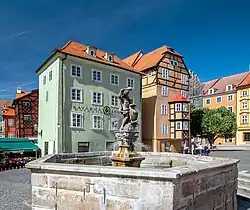 Kašna s Rolandem – kašna stojí uprostřed náměstí a do roku 1591 je ozdobena sochou rytíře Rolanda, který symbolizoval trhová práva říšských měst. Chebský lid mu říkal „Wastl“. Originál sochy je v mázhausu Chebského muzea, zatímco kašnu zdobí pískovcová kopie od akademického sochaře Živného z roku 1985.