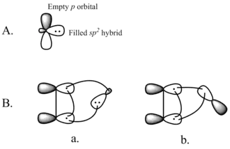 Interakcí zaplněného orbitalu karbenu s π systémem alkenu vzniká čtyřelektronový systém upřednostňující nelineární přiblížení. Upřednostňováno je také spojení prázdného orbitalu p v karbenu s orbitalem π z molekuly alkenu.[2]