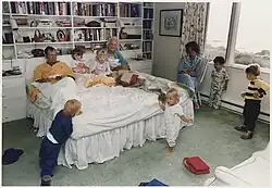 Prezident Reagan v Oválné pracovně s Fotografy Bílého domu: Bill Fitz-Patrick, Billie Shaddix, Mary Anne Fackelman (Miner), Pete Souza, Carol Greenawalt (McKay), Diane Powers, Louise Bell, Jayn Montieth, Michael Evans a Jack Kightlinger. 21. června 1983. -