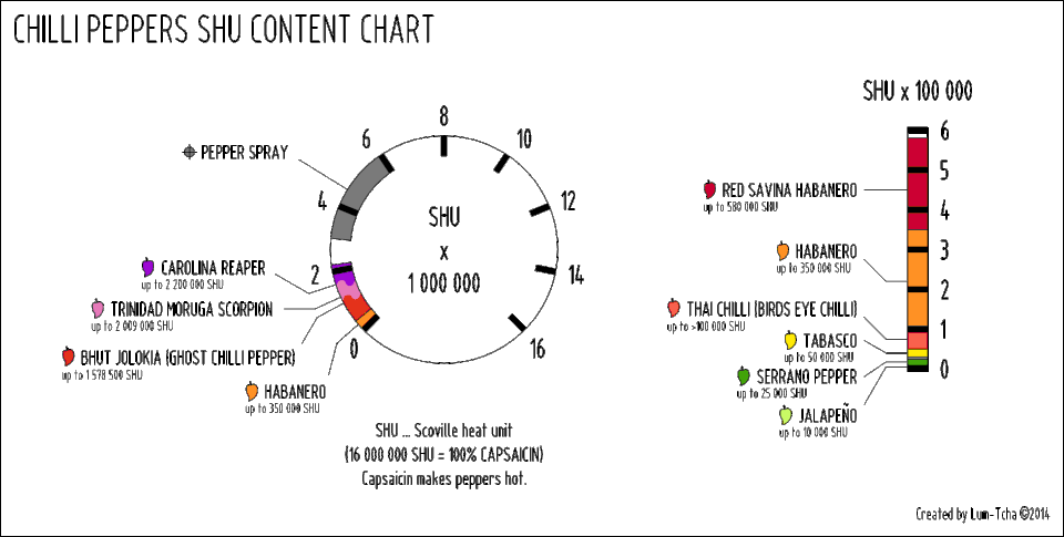 Graf porovnání pálivosti (SHU) vybraných chilli paprik.