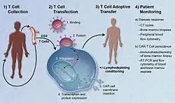 Adoptivní přenos buněk, které exprimují chimerní antigenní receptory, jsou považovány za slibné protirakovinné terapeutikum. CAR-modifikované buňky mohou být navrženy tak, aby byly cíleny proti některým tumor-asociovaných antigenům a díky tomu mohou být specificky cíleny individuálně pro každého pacienta. Díky tomu se jedná se o slibnou terapeutickou metodu léčby rakoviny.