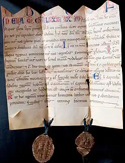 V tomto článku byl použit překlad textu z článku Charta partita na německé Wikipedii.