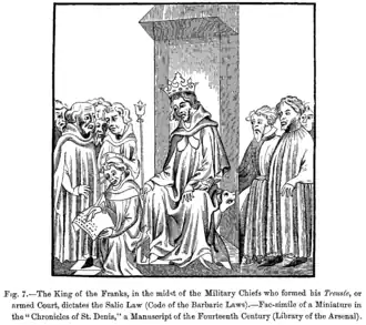 Tato pozdně středověká kresba představuje franského krále Chlodvíka I. diktujícího sálský zákoník